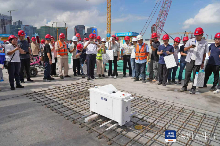 当天,与会人员实地观摩了由中建南方、中建二局承建的西丽综合交通枢纽项目。据现场工作人员介绍,项目自开工建设以来,始终坚持党建引领,将党建工作融入现场施工,通过设置党员创新工作室、组建专业创新团队,大力推进项目创新创效、技术攻坚,为科技成果转化提效赋能。在技术攻坚、绿色施工、智慧管理方面的务实创新,成为现场关注焦点。
